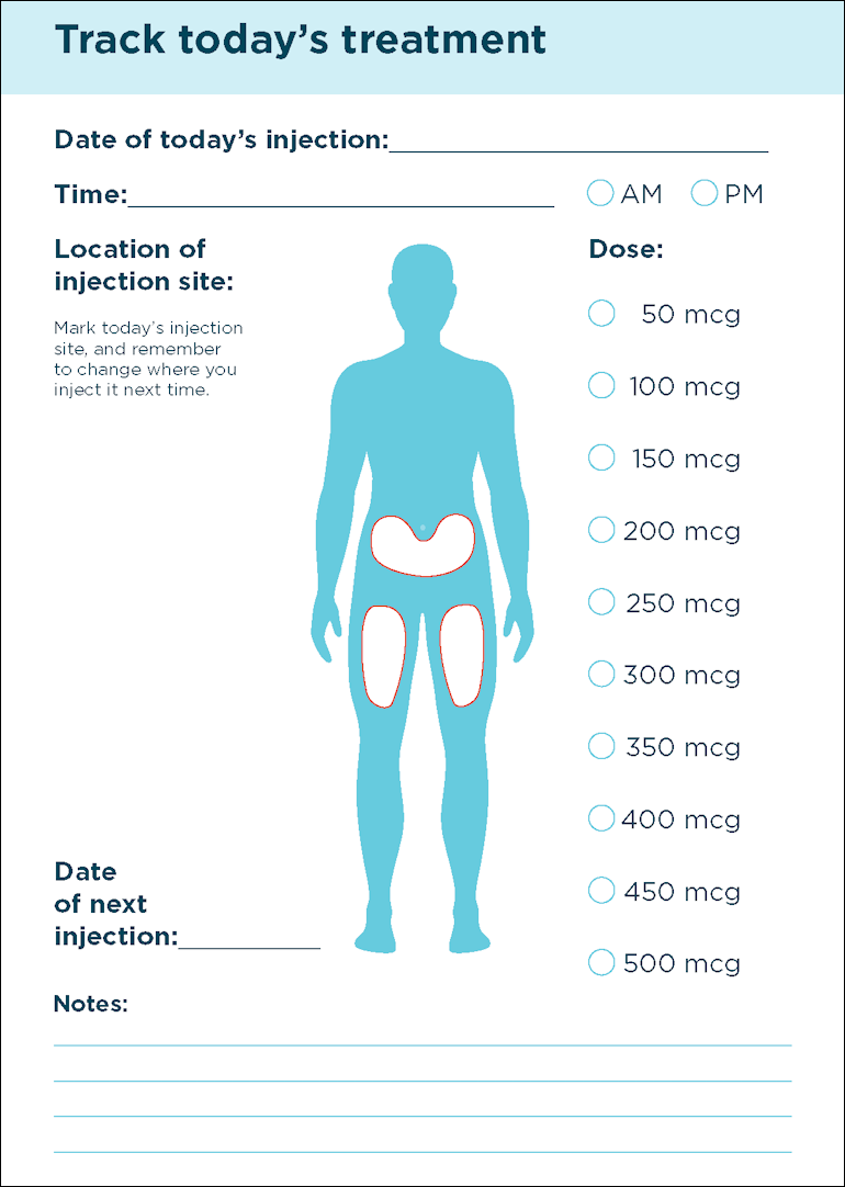 Ran out of pages in the treatment tracker notepad from your Welcome Kit? Print more sheets to detail each treatment.