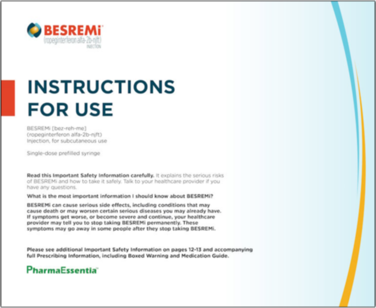 Call your doctor for medical advice about side effects. You may report side effects to PharmaEssentia at 1-800-999-2449 or FDA at 1-800-FDA-1088.